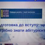5 квітня 2025 року відбулася консультація для абітурієнтів у межах вступної кампанії. Вступну лекцію на тему: «Підготовка до вступу: що потрібно знати абітурієнту» провела кандидатка мистецтвознавства, доцентка кафедри дизайну і теорії мистецтва Х. М. Нагорняк. Технічний супровід – Олег Грабар.