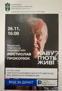 ЗАПРОШЕННЯ НА МОНОВИСТАВУ Запрошуємо на цікаву моновиставу поета, культуролога, громадського діяча Ростислава Прокоп’юка / м.Прага, Чехія /. Будемо раді Вашій участі!