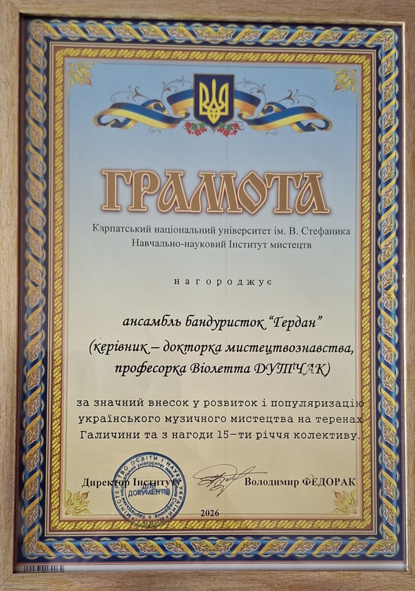 Концерт з нагоди 15 -річного ювілею квартету бандуристок “ҐЕРДАН”